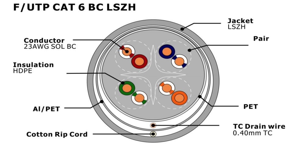 | Resaltar: | Cable de la red de la categoría 6 de la chaqueta de LSZH,Cable de Ethernet de la categoría 6 del HDPE,Cable de la red de la categoría 6 de F/UTP |